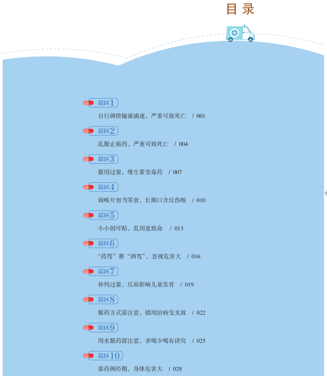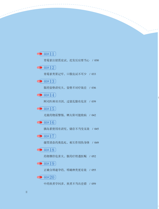 本書從四十個方麵詳細解讀了當前我國居民廣泛存在於臨床、社區、家庭的用藥誤區,結構清晰、簡繁得當、精煉意賅,由表及裏、從淺至深,既有其科學性、權威性、專業性,又不乏可讀性、趣味性、實用性。每部分內容均配以貼近生活的情景漫畫插圖與典型病例、案例的講述剖析以及國際最新權威數據的比對分析等全方位視覺呈現形式,可使讀者一目了然、感同身受、警醒珍重。本書為國人走出用藥誤區,使安全用藥理念深入居民生活,盡可能有效控製濫用、誤用、錯用藥物所致公眾健康損害發揮重要作用;並將為構建適合我國國情的安全用藥綜合戰略模式發揮深遠意義。