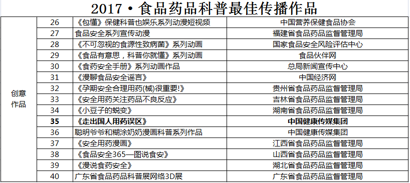 摘要:在日前由國家食品藥品監督管理總局“2017·全國食品藥品科普排行榜”評選活動中,由中國醫藥科技出版社出版的《走出國人用藥誤區》一書獲得最佳傳播創意作品獎。