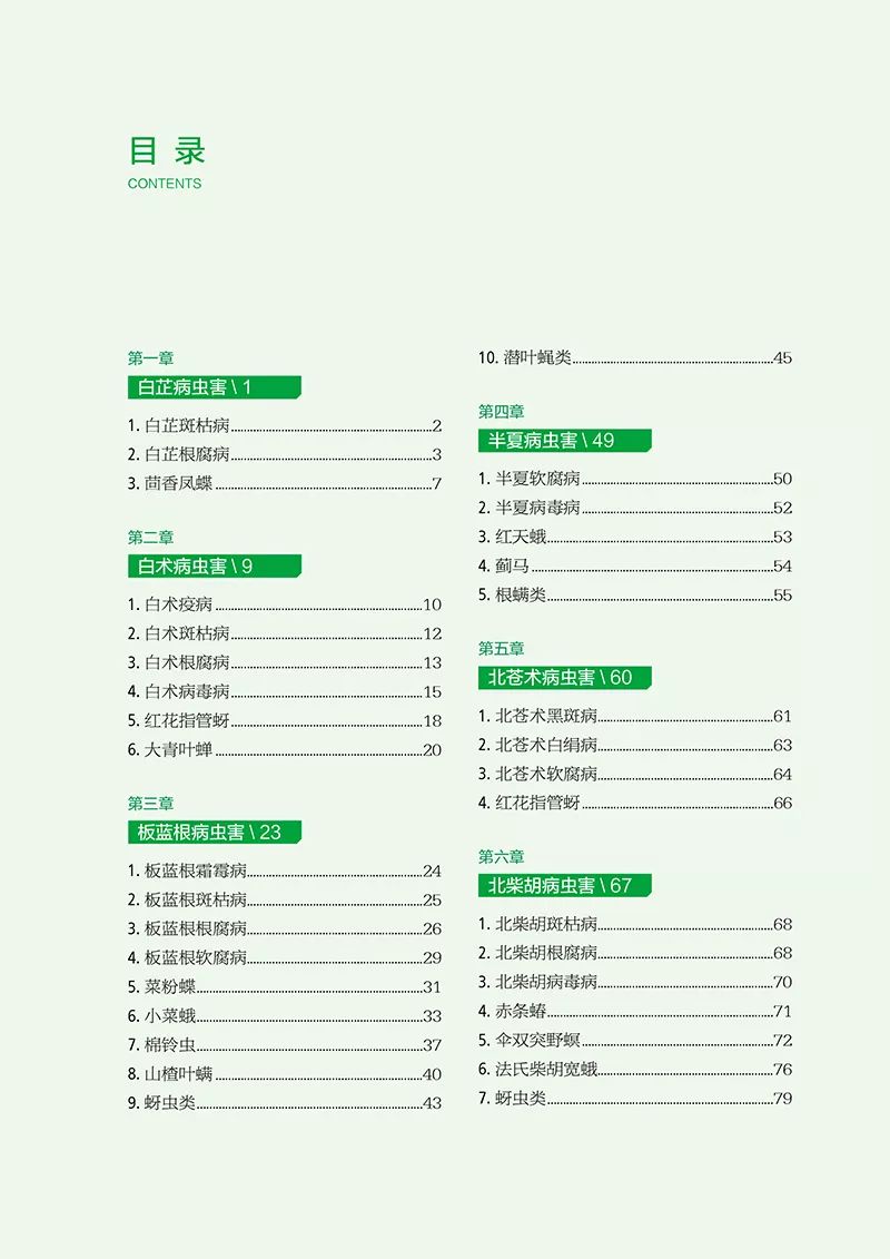 本書選取了河北省常見的35種大宗藥用植物,並以之為章,每章先介紹該植物的分類、主要種植區域和病蟲害種類,然後對其主要病害和害蟲進行詳細描述。病害部分按病害症狀、病原物、發生特點和防治方法四部分內容編寫;害蟲部分按形態特征、寄主範圍、為害特征、發生特點和防治要點五部分內容編寫;本書共介紹了35種藥用植物主要病蟲害212種,其中病害106種,害蟲106種。