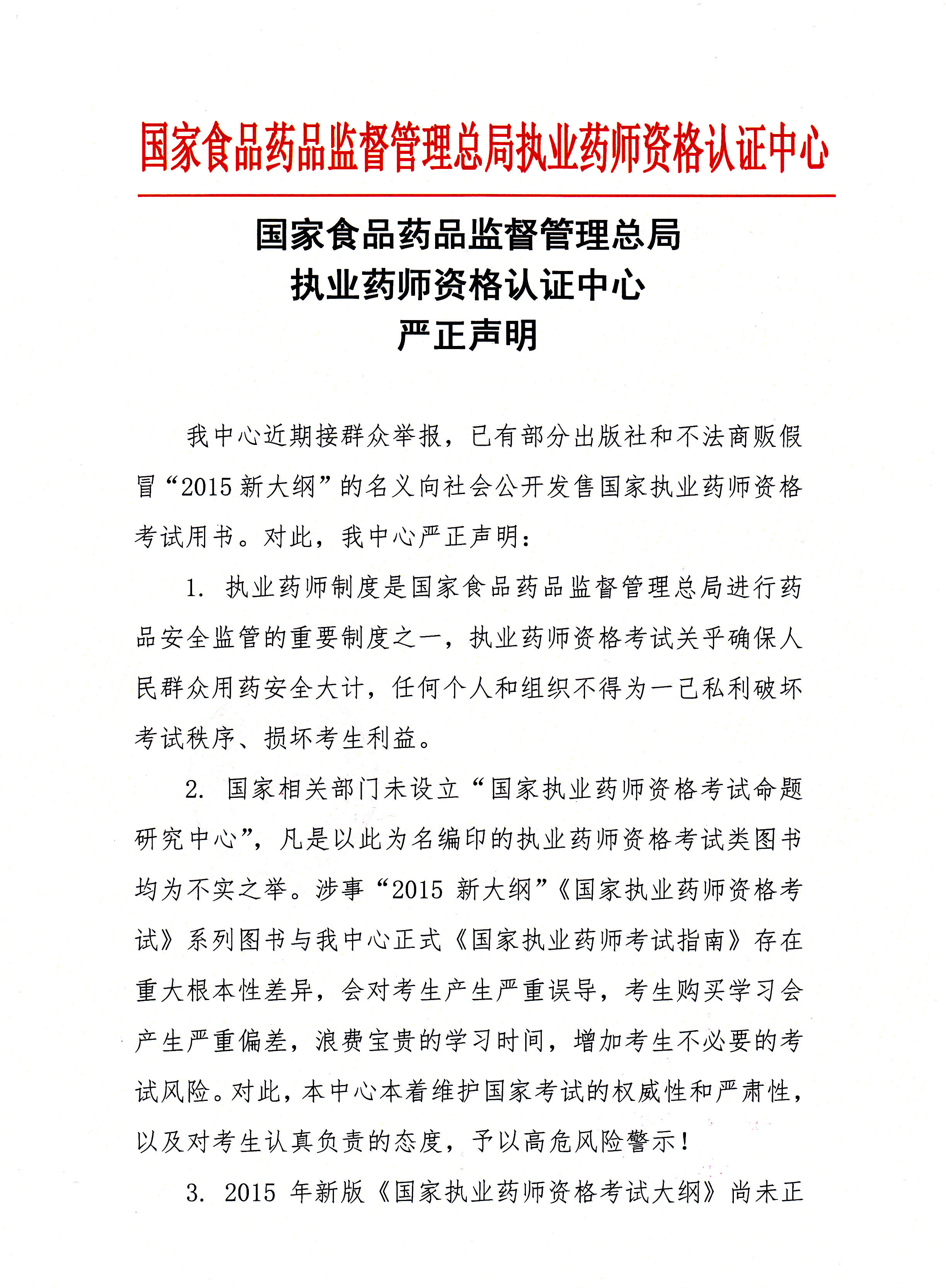 國家執業藥師認證中心關於2015年執業藥師資格考試的嚴正聲明