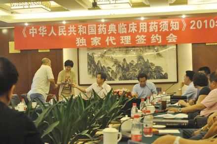 7月11日,《臨床用藥須知》2010年版獨家代理簽約會在北京廣西大廈隆重舉行。中國醫藥科技出版社社長、總編輯吳少禎,副社長許軍,以及二十餘家醫藥專業書店的代表參加了簽約會。