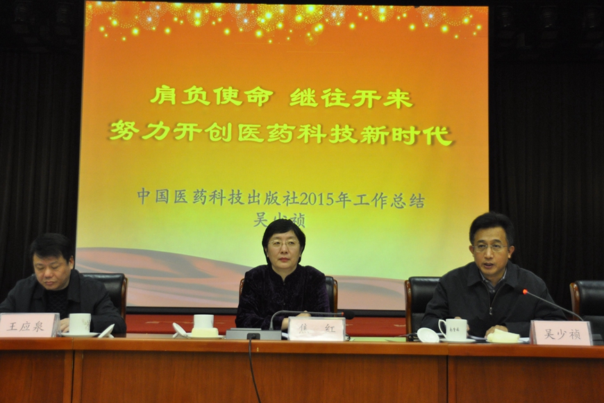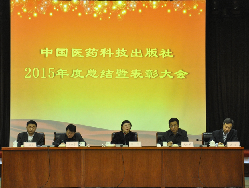 2016年1月25日,中國醫藥科技出版社召開2015年度總結暨表彰大會。會議認真總結2015年工作,深入分析當前形勢,部署2016年重點任務。國家食品藥品監督管理總局焦紅副局長出席會議並發表講話,出版社領導班子成員、全社職工參加了會議。副社長王應泉主持會議。