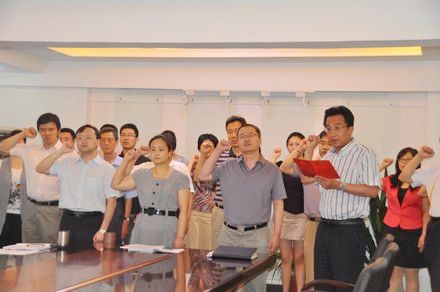 吳少禎社長帶領全體黨員深情地回顧了自1921年建黨以來九十年的曆史,他用“波瀾壯闊”四個字形容和概括了這九十年的光榮歲月,這四個字包含了多少風雨、艱辛、自強和奮鬥,這四個字包含了多少黨員的青春、熱血甚至生命!從南湖的一條小船上幾十人的政黨到九十年後黨員數量超過八千萬,黨員隊伍充滿生機活力;從抗戰勝利到全國解放,黨員一直保持了自己的先進性;從抗美援朝到經濟建設,黨員永遠是一麵鮮明的旗幟。